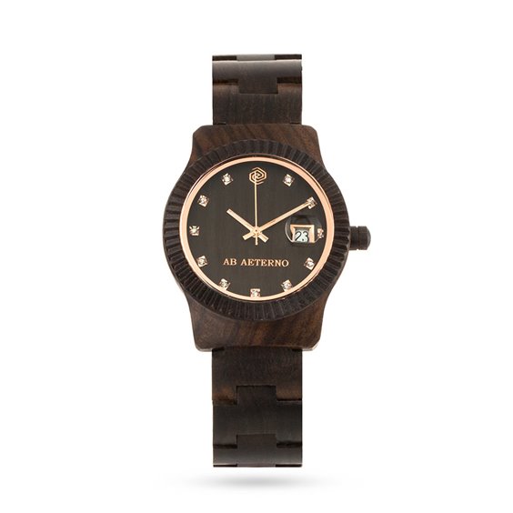 Peso 50 g Diametro 35 mm Spessore cassa 9 mm Lunghezza 21 cm, regolabile Legno Sandalo Nero Resistenza all'acqua Splashproof Garanzia 2 anni Movimento Ronda AG CH-4415 Lausen/Switzerland Cal. 505, 515