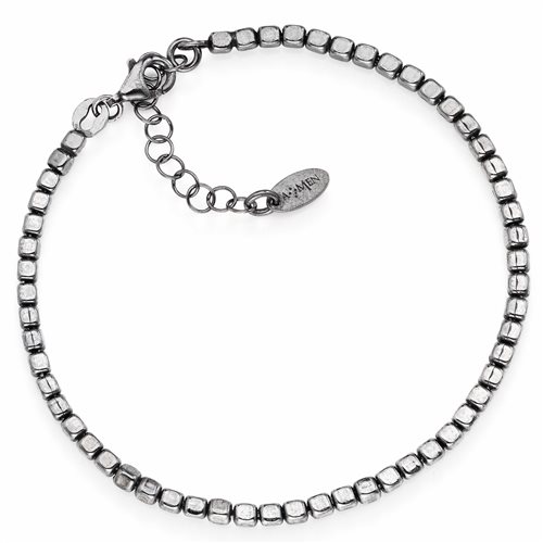 Bracciale in Argento 925/°°° a maglia quadrata con effetto brunito; lunghezza personalizzabile da 18,5 a 22 cm