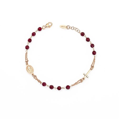 Bracciale Argento 925 Della Collezione Rosari. Bracciale Rosario In Argento 925 Con Agata E Rubino Di Colore Rosè. Materiale: Argento 925