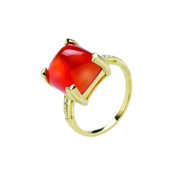 anello oro 9ct collezione MIXUP cherry quarzo rosso e diamanti