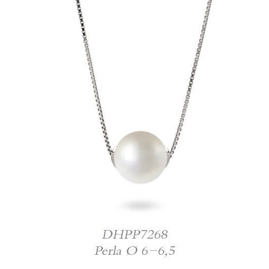 collana in oro bianco 18 kt con perla tonda naturale acqua dolce
