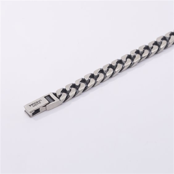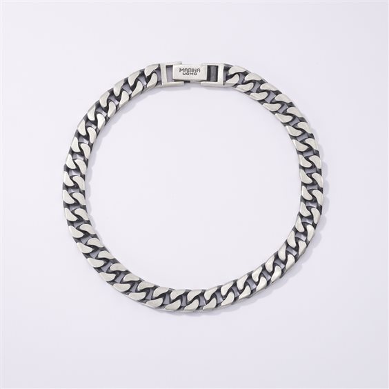 Bracciale groumette in argento brunito con finitura vintage. • Altezza della catena: 6 mm • Chiusura a pinza con molla lunghezza 20 cm • Materiale: Argento 925