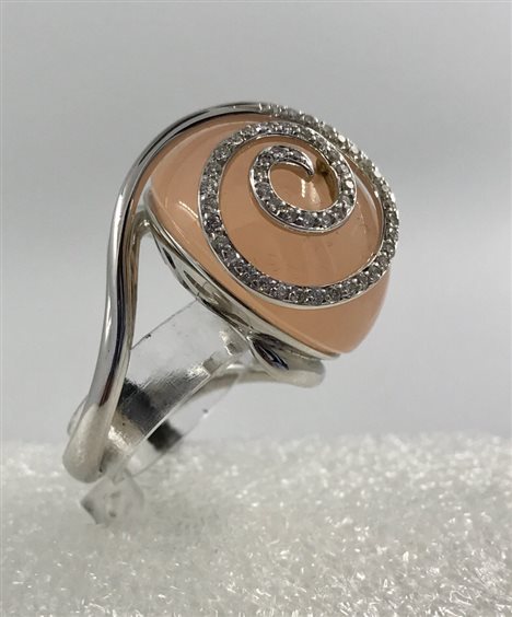 anello oro bianco Pietra di Luna gr 9.500 diamanti ct 0.390