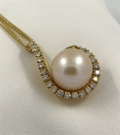 collana con perla champagne e diamanti bianchi ct 0.350 catena in oro giallo doppio filo