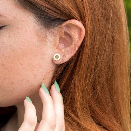 Mono Orecchino Finto Dilatarore Ear Balance Rosè con Smalto Bianco