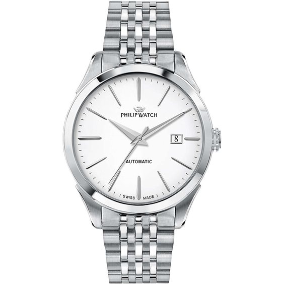 Orologio Automatico Da Uomo Di Philip Watch Della Collezione Roma. Modello Con Cassa Tonda In Acciaio Lucido E Satinato Del Diametro Di 41Mm E Vetro Zaffiro. Modello Con Bracciale In Metallo Di Colore Argento E Chiusura Con Doppia Farfalla Con Pulsanti. Orologio Con Movimento Automatico Mvt.Stp1-11 E Resistenza All'Acqua Di 5 Atm. La Referenza È R8223217002 Questo meccanico verrà spedito con Scatola Originale Philip Watch