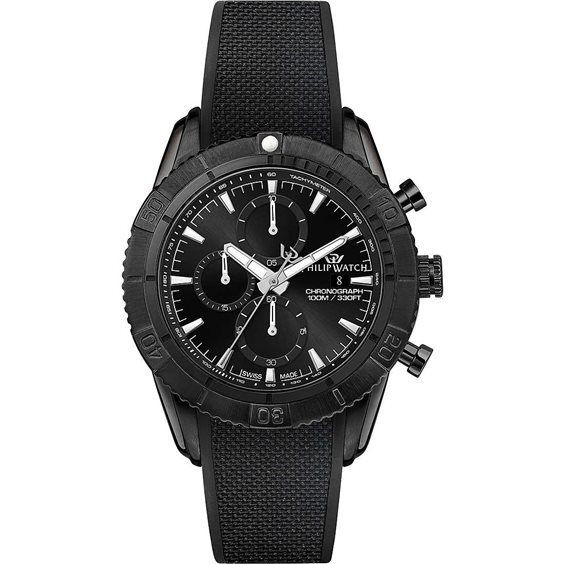 Orologio Cronografo Da Uomo Di Philip Watch Della Collezione Champion. Orologio Realizzato In Acciaio, Pvd Nero. Orologio Con Vetro Zaffiro. La Resistenza All'Acqua È Di 10 Atm.