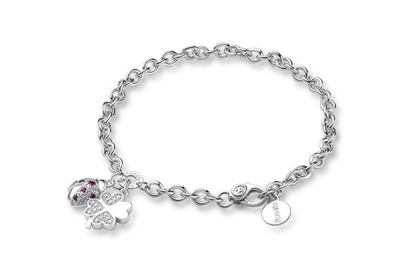 Bracciale in argento con pendenti a forma di quadrifoglio e coccinella
