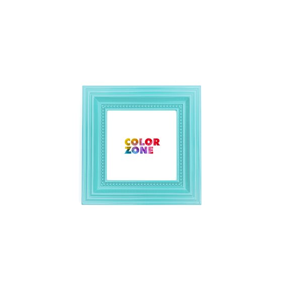 CORNICE IN RESINA COLORE VERDE ACQUA DALLE LINEE SEMPLICI E MODERNE.MISURA CORNICE 21,5X21,5,LUCE 13X13 CM.