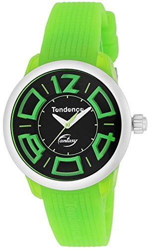 Tendence, Fantasy Fluo, orologio da donna, cassa in acciaio e nytech, cinturino in silicone, quarzo giapponese (a batteria), TG631003 L'orologio diventa fluo sotto i raggi ultravioletti ed il cinturino e la cassa diventano fluorescenti al buio.